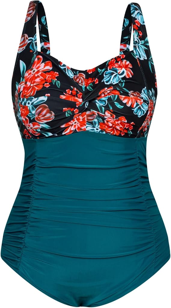 Women Plus Size One Piece Swimsuits Tummy Control Bathing Suit Twist Front Ruched Push Up Swimwear