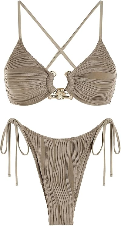 Women's Cutout Bikini Criss Cross Textured Metal High Leg Bikini Sets Cheeky Bikini Two Piece Swimsuit