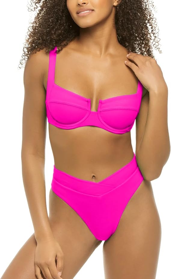 Womens Underwire Bikini Sets Push Up Two Piece Swimsuits Lace Up High Waisted Bathing Suits Cheeky High Cut Bottom