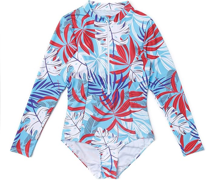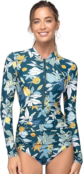 Women One Piece Recycled Sustainable Swimwear UPF 50+ Sun Protection Long Sleeve Rash Guard