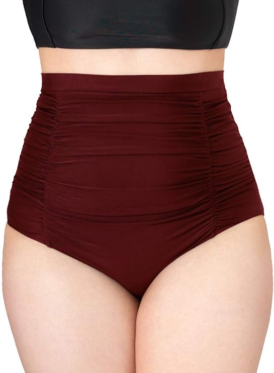 Women Ruched High Waisted Bikini Bottom Swimsuit, Tummy Control Full Coverage Swimwear, Small to Plus Size