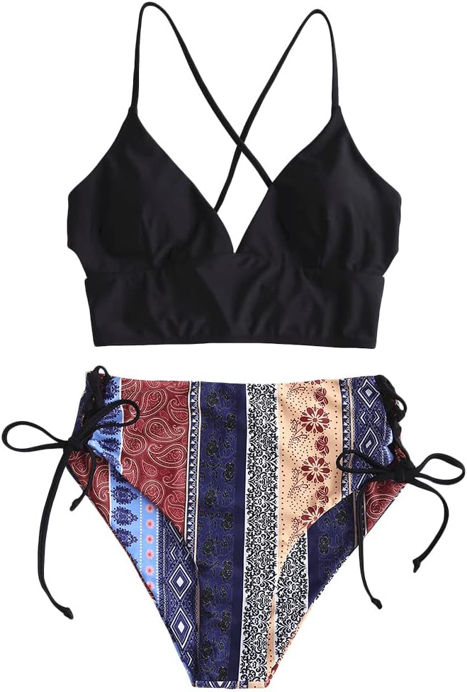 Women Two Piece High Waisted Bikini Set Boho Floral Print Swimsuit Tummy Control Bathing Suits Sexy Vintage Swimwear